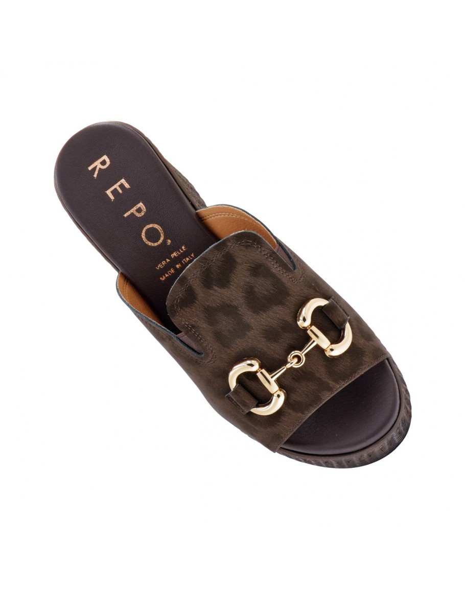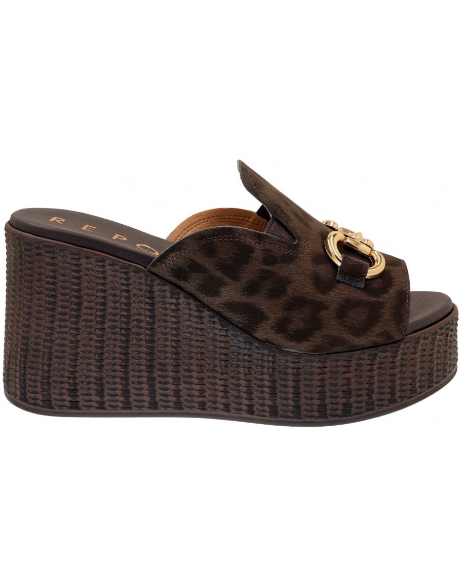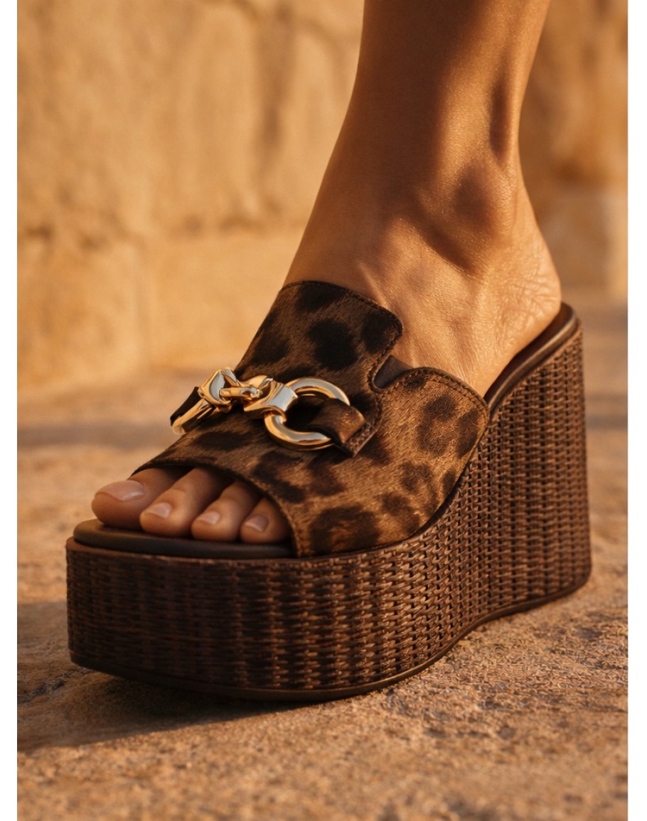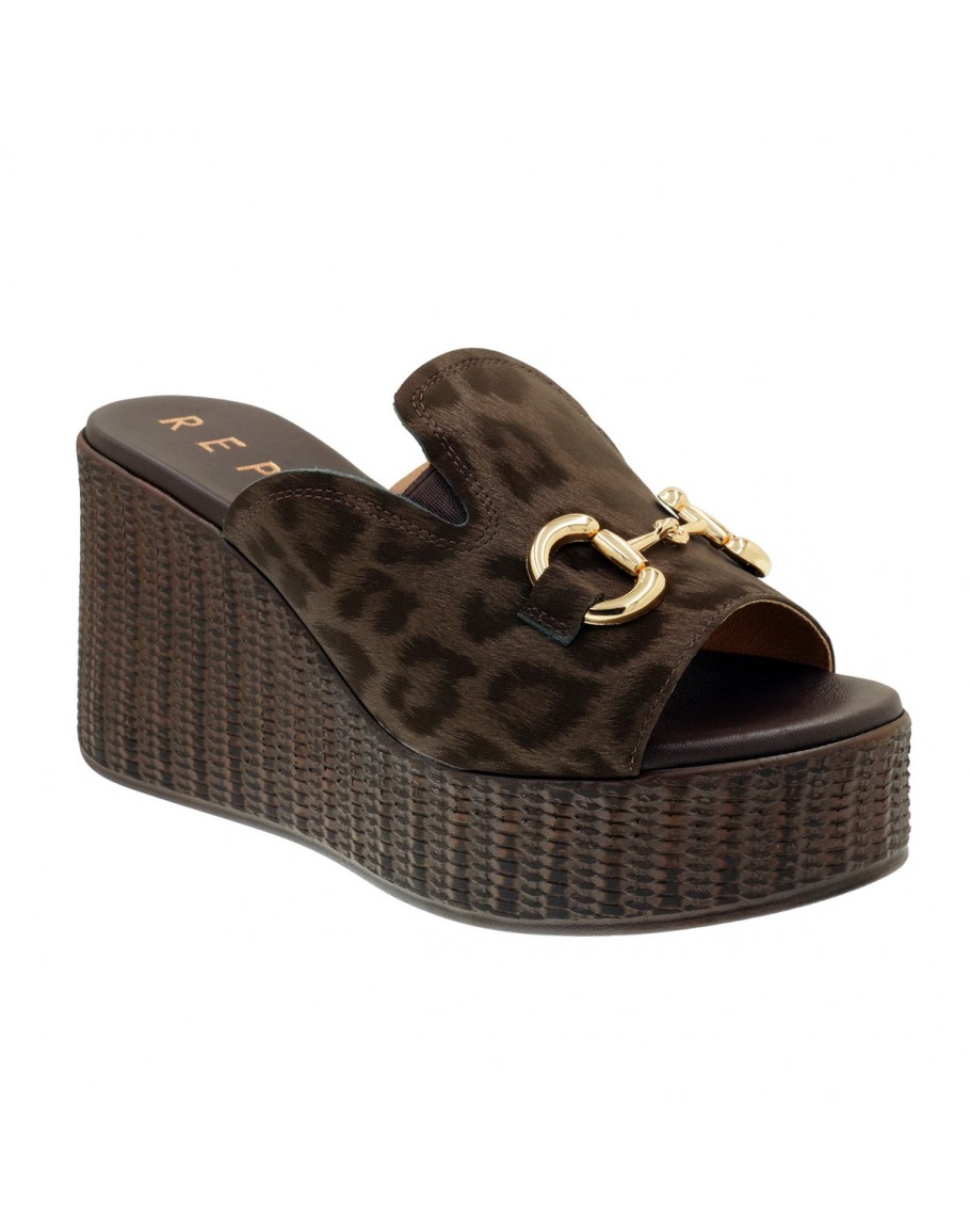 La Repo Δερμάτινες Πλατφόρμες Mule Καφέ Λεοπάρ 22111