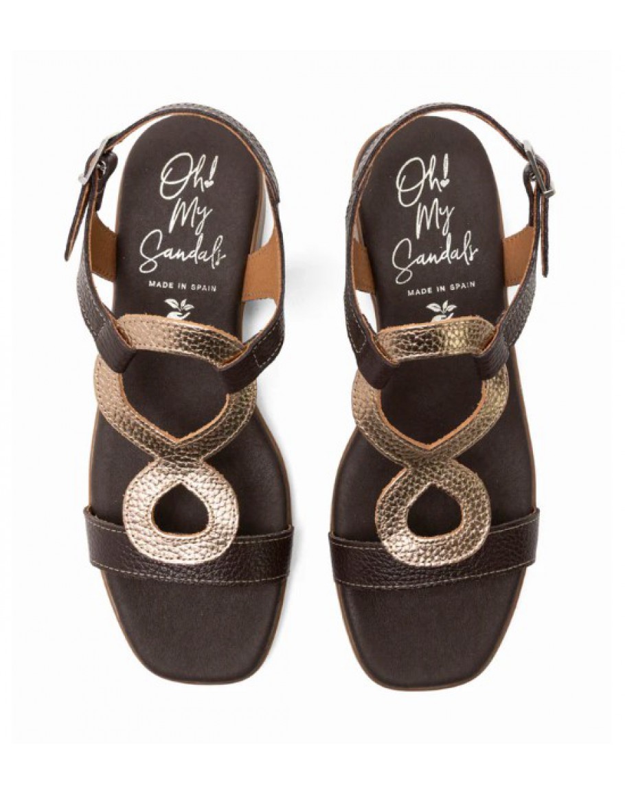 Oh My Sandals Δερμάτινα Πέδιλα Flat Καφέ 5893