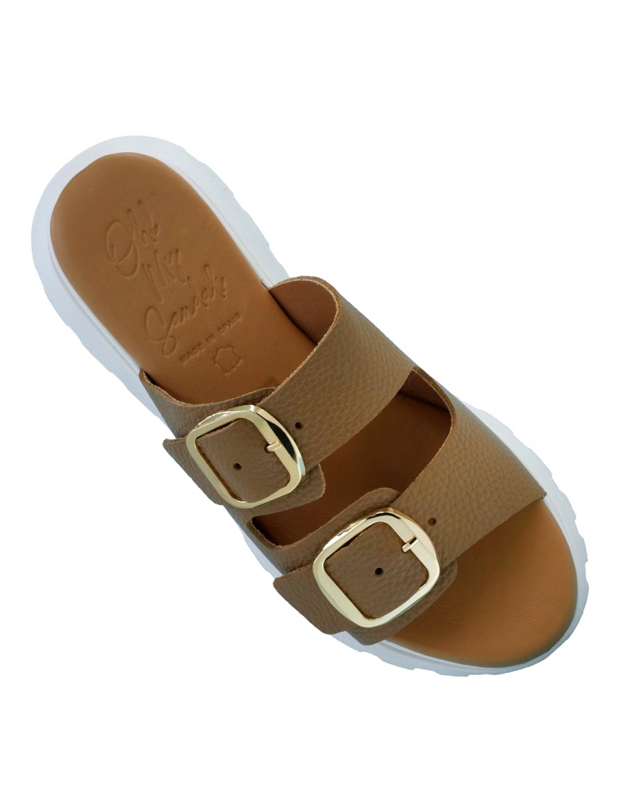 Oh My Sandals Δερμάτινα Πέδιλα Καφέ 5950