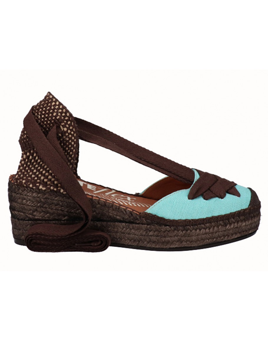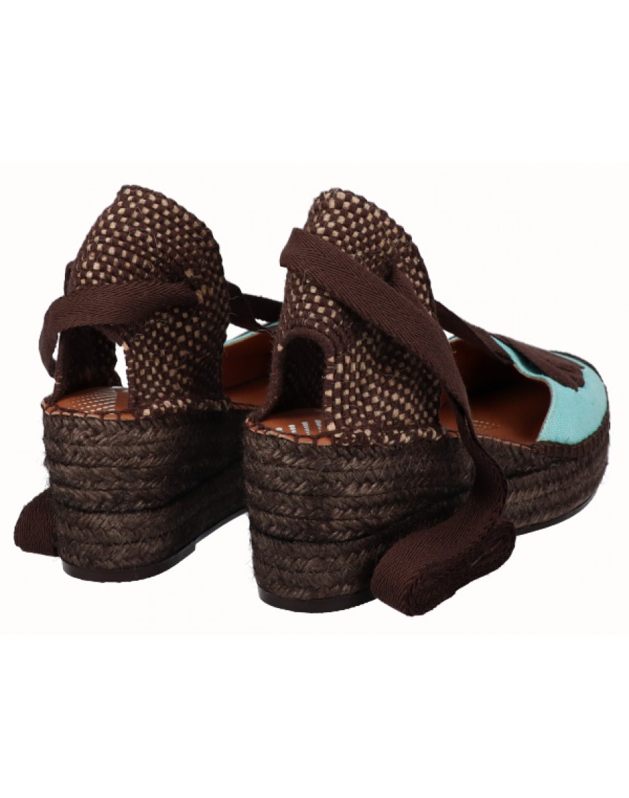 Εντυπωσιακές εσπαντρίγιες της Viguera σε μοναδικό συνδυασμό τιρκουάζ και καφέ αποχρώσεων που δίνουν ξεχωριστό χαρακτήρα στο καλοκαιρινό στυλ. Τα κορδόνια που δένουν στον αστράγαλο προσφέρουν κομψότητα και σταθερή εφαρμογή. Είναι οι πρώτες και μοναδικές εσπαντρίγιες με ανατομικό flexible πάτο είναι stylish αλλά ταυτόχρονα προσφέρουν άνεση. Ένα ιδιαίτερο σχέδιο που προσθέτει χρώμα και στυλ σε κάθε καλοκαιρινό outfit.